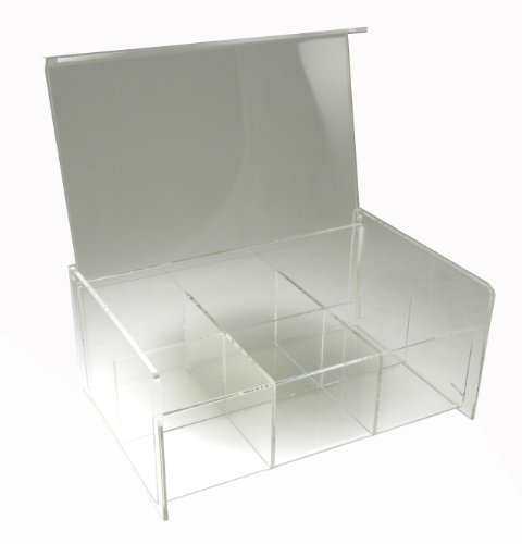 With six compartments you will be able to organize anything throughout your house. You will be able to organize your kitchen, your bathroom, your office or your bedroom. The compartments allow you to keep things separated and organized. This clear box allows you to see exactly what's inside. When opened, the lid will stay standing upright on its own so you don't have to worry about it. Get your countertops organized with this clear compartment box. Read more...
