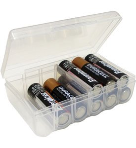 This AA Battery Storage Box is an excellent battery organizer for storing and protecting AA batteries for use in your remote controls garage door openers video game controllers and much much more. This plastic battery storage box holds up to twelve AA batteries at a time and includes a movable divider to help you keep fresh and dead rechargeable batteries separate. Read more...